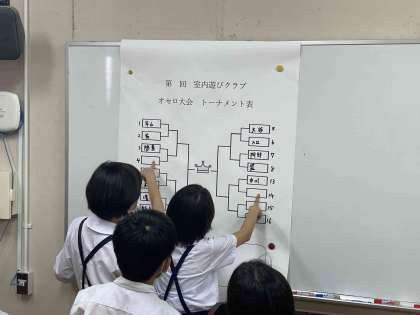 室内あそびクラブでは、オセロ大会が開催されていました。トーナメントなので、全部で3回勝つと優勝です。決勝は次回!