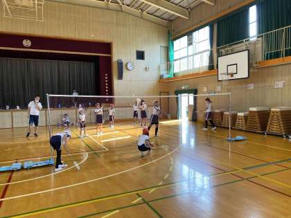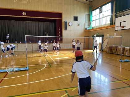 バドミントンクラブでは、ラリーの練習を行なっていました。ラケットがきちんと振られていて上手な児童も多かったです。