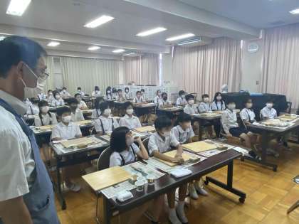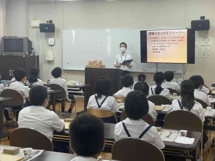近つ飛鳥博物館の学芸員の方に来ていただき、埴輪について教えていただいた後、実際に粘土で埴輪を作りました。