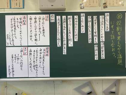役割を決めて話し合い活動を行う学習ですが、それぞれの役割に応じて一生懸命頑張っていました。