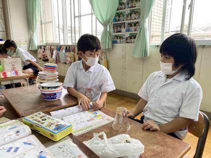 おもちゃは、カップ麺の容器や乾電池などを使って製作します。