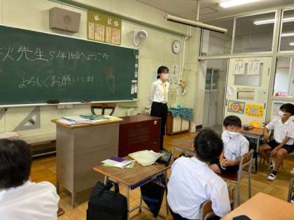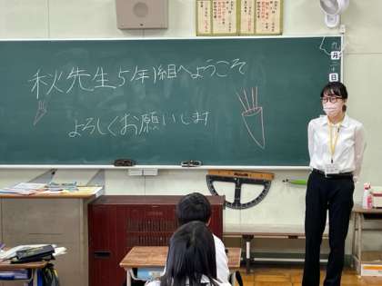 昨日から教育実習の先生が来てくれています。先生の自己紹介のあと、みんなも自己紹介を行いました。緊張しながらも、自身の言葉でしっかりと挨拶ができていました。