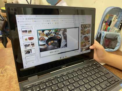 学習発表会でパワーポイントを作りますが、今日はその練習として、自分が調べたいもので作成する練習を行いました。なかなか上手に完成しました。