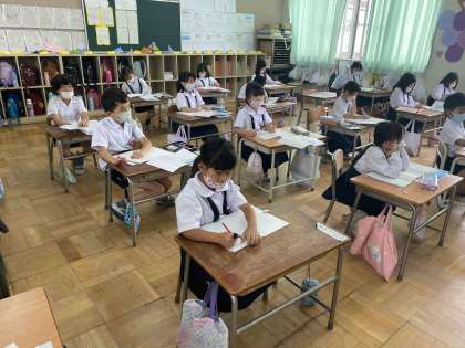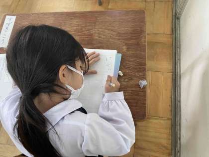 難易度別にカタカナの学習を行なっています。「けちゃっぷ」など中々難しい問題もよく聞いて取り組んでいました。家庭学習でもやってみてください。