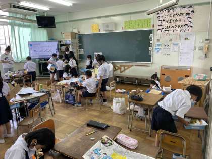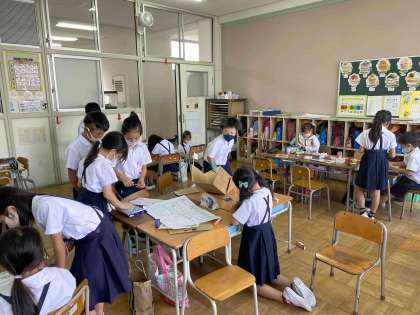 おもちゃランドの準備ですが、たくさんのおもちゃが完成しています。各班のおもちゃを見てみると、いろいろな箇所で工夫が見られます。また、協力して取り組むことができています。