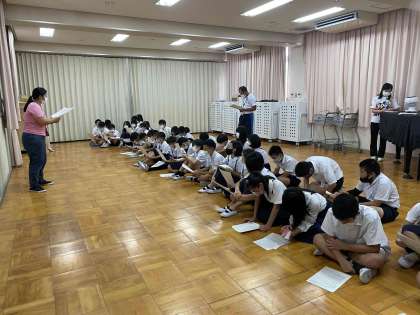 リーダー会議を行いました。当日は全校で服部緑地に向かいオリエンテーリングを行うので、リーダーは責任重大です。しっかりと準備を進めて21日の本番に備えてほしいです。