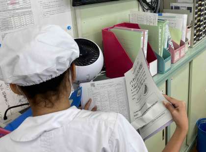 給食でいつも登場しているハヤシライスは、小麦粉から作る「ブラウンルウ」でとろみをつけています。今日は、小麦粉で作った「ブラウンルウ」のかわりに米粉(上新粉)を使っています。