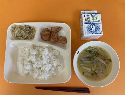 食物繊維は、野菜やきのこ、いも、豆、海藻、果物などに多く含まれています。今日の給食に使われている切り干し大根も食物繊維が多いです。