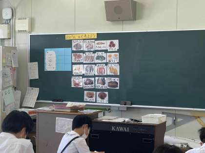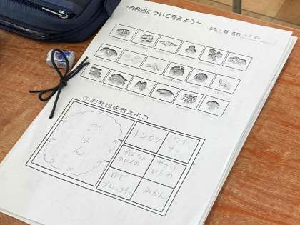 お弁当について考えようという学習を行っています。みんな赤.黄、緑のバランスを考えて学習できています。