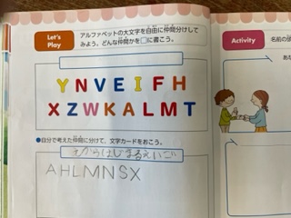 アルファベットの学習をしました。アルファベットの歌を歌って、アルファベットを覚えていました。