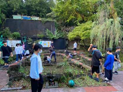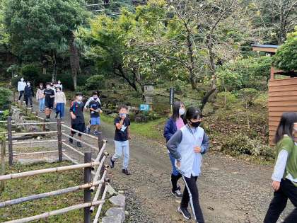 朝の散歩をしてからラジオ体操を行いました。