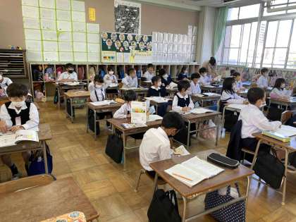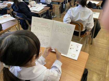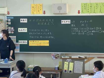 かけ算の学習ですが、ノートに書いた自分の考え方を上手に発表しています。他の児童も参考にしていて良い連鎖が起きています。