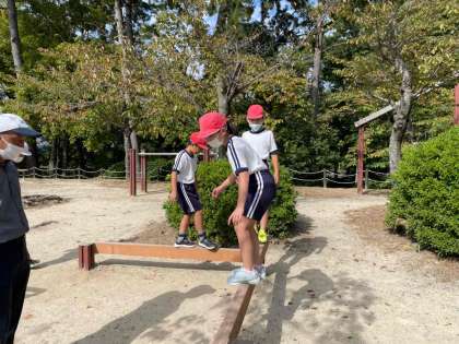 5つのポイントでは、班で協力してゲームをします。