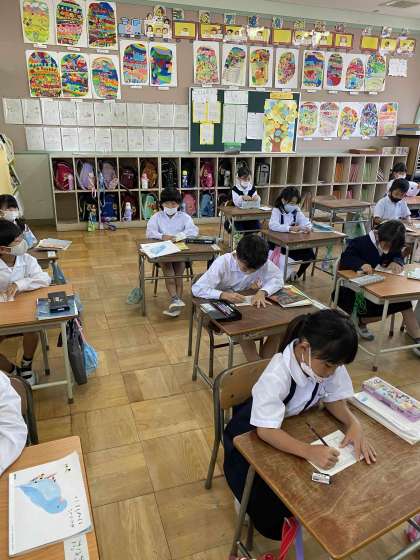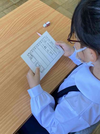 今日は漢字のテストでした。「お金を出す」「2ねん生」「山」など数問ありましたが、一生懸命考えて丁寧に書いています。