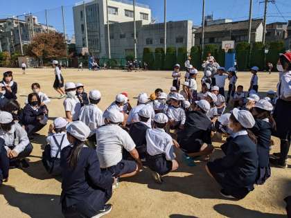 SDGs週間で、運動委員会が中心となって仲良し遊びタイムで1年生と遊びました。1年生全員が鬼で6年生が逃げましたが、あっという間につかまってしまいました。1年生、とっても速かったです!