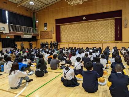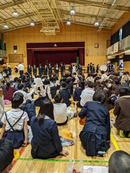 5.6時間目に歌島中学校へ部活動見学に行きました。中学生に向けての今からできる心構え、中学校生活の話、生徒会の方々の進行で部活動ムービーや、部活動の実演に、心踊る時間となりました。