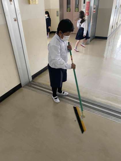 先日の業者による清掃で綺麗になった床を守っていこうと丁寧に掃除しています。