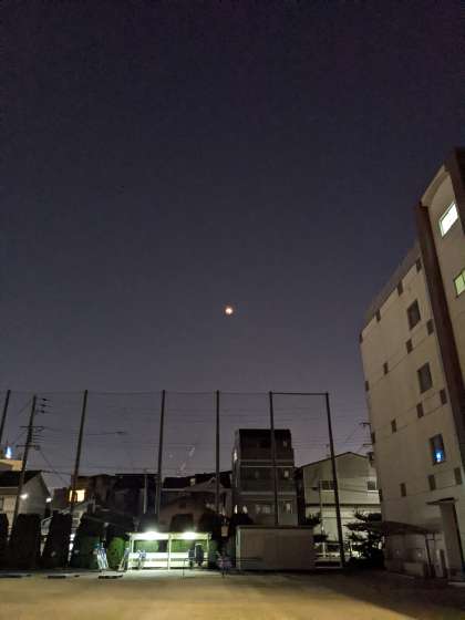 校長講話でもありましたが、児童のみなさんが下校した学校の校庭から皆既月食が見えました。約400年ぶりとのことで、とても珍しい現象です!