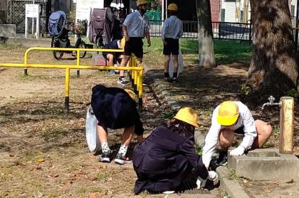 5年生が、花川公園と花川西公園の清掃をしました。公園で一緒に清掃していただいた地域の方ありがとうございました。