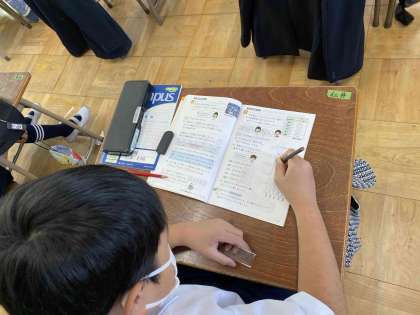 がい数を使ってグラフに表す学習を行いました。グラフをかくときは、「素早く、丁寧に」を心がけてかきます。