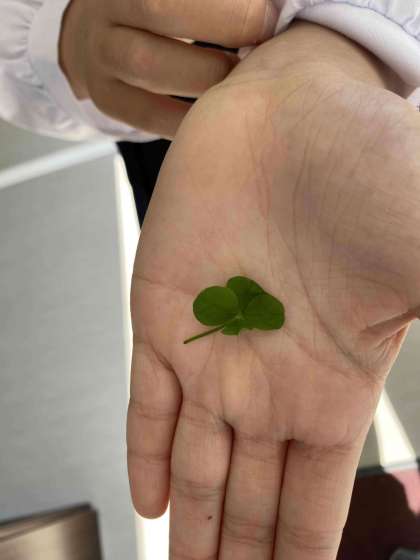 5年生が地域清掃に行った時に公園で四つ葉のクローバーを発見したようで、帰校してから校長室に見せに来てくれました。