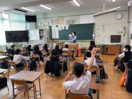 そして、コロナウイルスが拡大しないよう指を歯に見立て、歯みがきの正しい方法を教えていただきました。