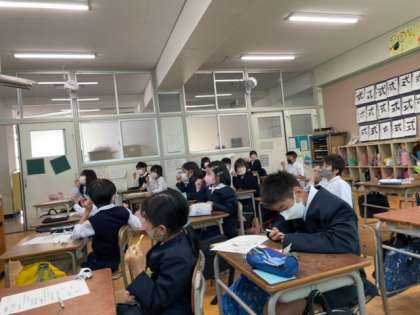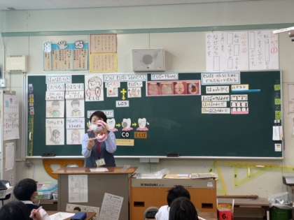 石井先生から歯の役割り、歯磨きのしかたについて指導していただきました。