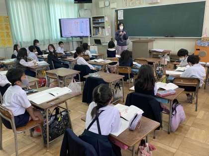 みんなの前で話すという学習の中で、自分の宝物についてしっかりと発表できていました。