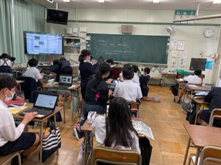 川の流れの学習の資料を一人一台端末を使って作成しています。
