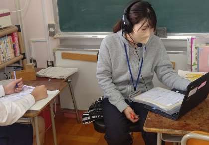 出席している児童が計算問題をしている間に、Meetで自宅で学習している児童と計算の答え合わせをしていました。