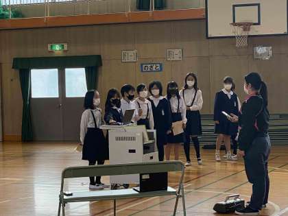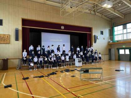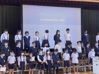 5年生も講堂で練習しました。世界の国々をグループごとに調べたことを発表します。パワーポイントも自分たちで作っていますので、それも楽しみです。