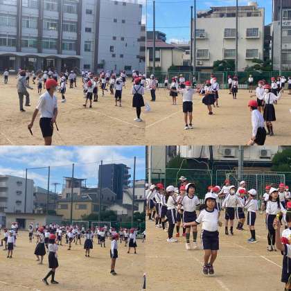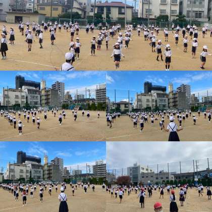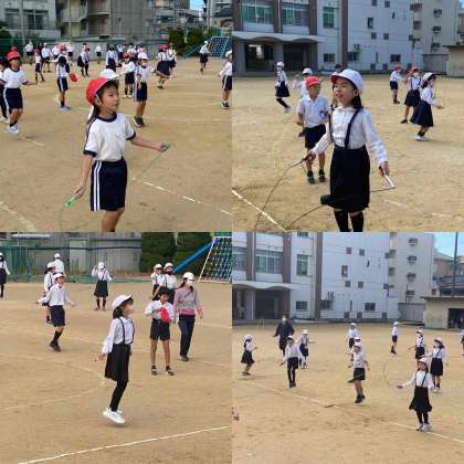 12月12日までなわとびタイムを実施します。今日は2.4.6年生で行いました。全員が帽子を白にして課題をクリアしたら赤にします。全員が赤になることを目指して頑張っていきます。とび縄の持参や長さの調整などよろしくお願いいたします。