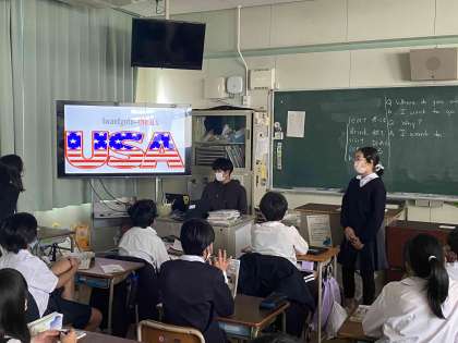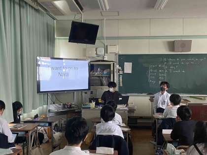 アンガー先生との英語の学習は先週より取り組んできた「行きたい場所や国」「食べたいもの」などを英語で発表しました。スライドも自分たちで作成し、立派な発表でした。聞く態度もよく、友だちの発表を参考に手直しする児童も見られました。