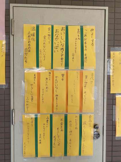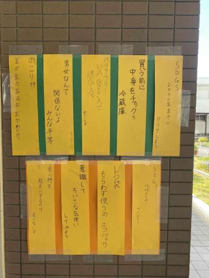 SDGsに関わる川柳を考えて靴箱付近に掲示しております。明日、ご来校されましたらぜひご覧ください。