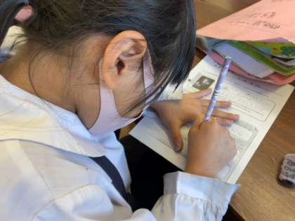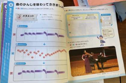 「メヌエット」を聞いて、ワークシートに聴いた感想や曲の感じを書き込みました。