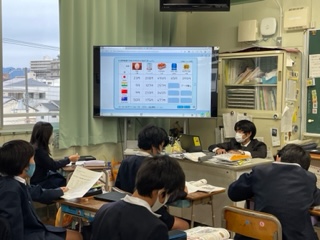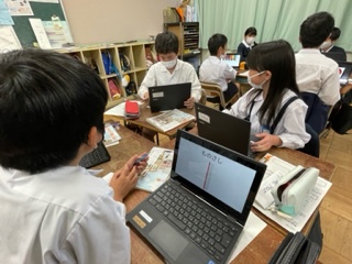その後、自分達でもパソコンでクイズを作成し、互いにグループで出し合っていました。