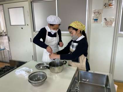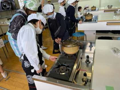 経年テスト1日目の教科を頑張り楽しみにしていた調理実習です!!ご飯と味噌汁を作ります。