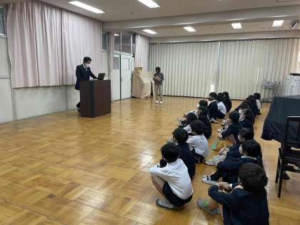 オンラインで行いましたが、パソコンの関係で一クラスだけ多目的室で一緒に行いました。