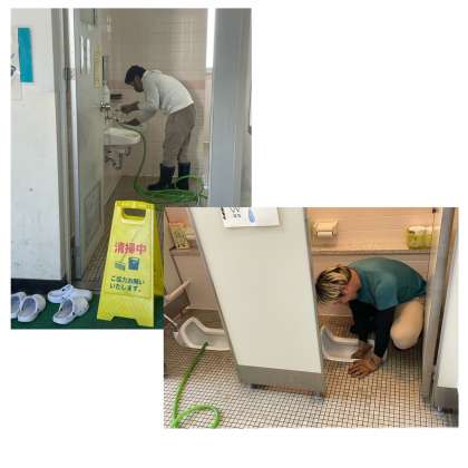 昨日、専門業者による全館トイレ清掃を行いました。普段のトイレ清掃では手の届かないトイレ内部や、臭いのもとになる尿石除去などを行いました。