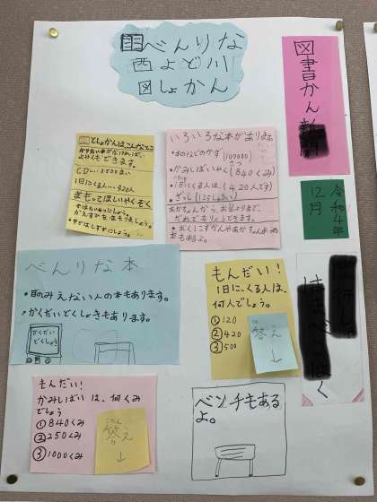 西淀川図書館について調べた事を新聞にして掲示しています。教室後方にございますので、懇談会の際にご覧ください。