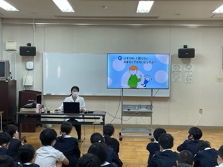 学校薬剤師の先生に来ていただき、お薬について学習しました。