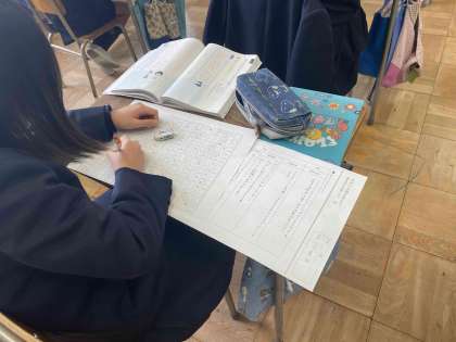 反対の立場を考えて意見文を書くという難しい学習を行っています。反対の意見を予想することで自分の意見や考え方が深まっていきます。