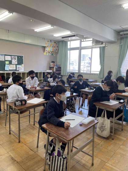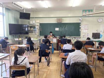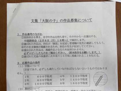 席替えなどをした後、「大阪の子」の原稿作りに取りかかりました。どのように書くと良いのか、担任が音読をして確認しました。