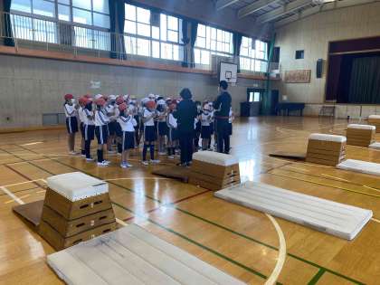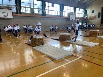 今日は講堂で跳び箱を行いました。