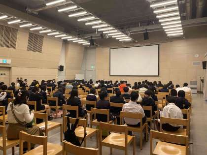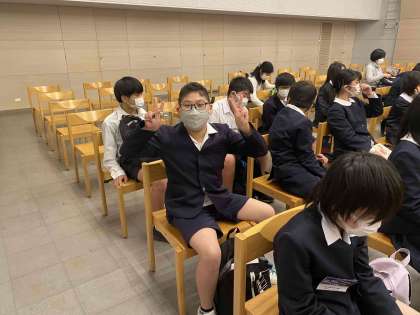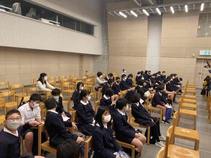 講堂で今から映画を見ます。火の海という大阪大空襲のアニメ映画です。
