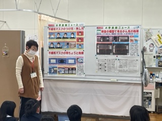 3学期初の発育測定です。はじめにマスクの話を聞いてから、測定をしました。大きく成長している子が多かったです。