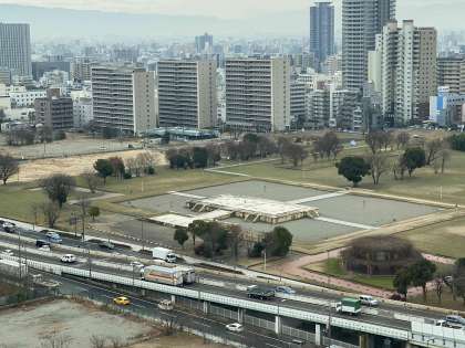 先ほどはこちらでお弁当を食べていました。大阪の特等席です。