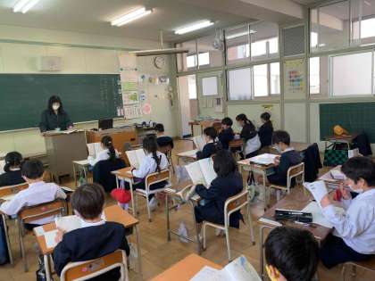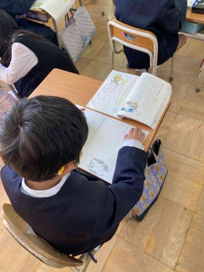 おとうとねずみ チロの学習もだいぶ深まってきました。今日は、チロが言った「いいこと」とは何か。「よろこんでいるところ」はどこか。自分の考えを書いて表現する学習を行いました。チロになりきって音読する様子も素晴らしかったです。
