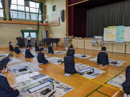 今日は小学校生活最後の席書会でした。思いを込めた「希望の朝」、明日からも、朝から希望を持って残りの小学校生活を送って欲しいです。