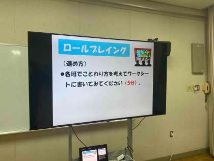 講話に続いてロールプレイングを行いました。中学生などにタバコを勧められたらきちんと断ることができるのか。大人が中学生役となり順番に行いましたが、強引に勧められたら中々難しい様子でした。ましてや知らない中高生に強引に勧められたらもう...逃げるしかないですね。